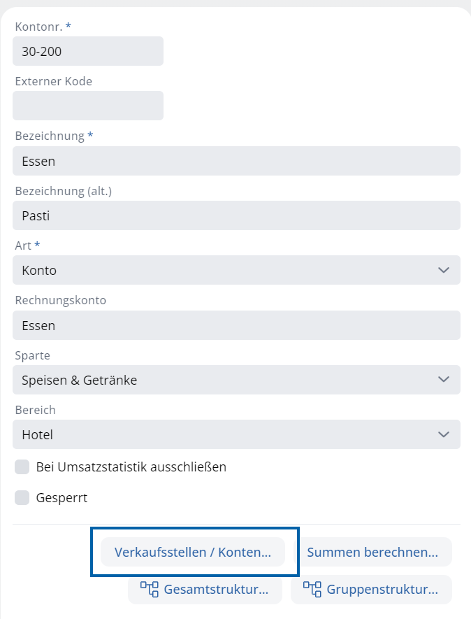 Sollten Extras einer Verkaufsstelle mit einem bestimmten Umsatz- und Rechnungskonto verbucht werden, kann dies beim jeweiligen Umsatzkonto definiert werden.
