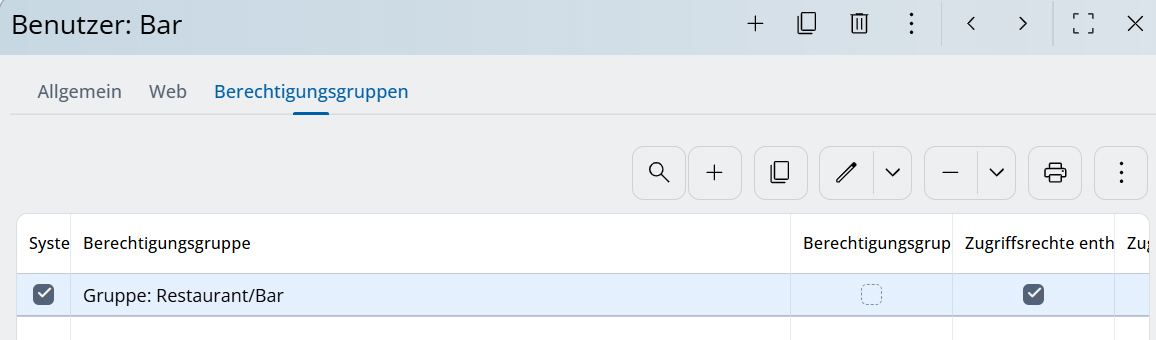 Mit der Berechtigungsgruppe Restaurant/Bar hat der Benutzer nur Zugriff auf den ASA Touch POS: