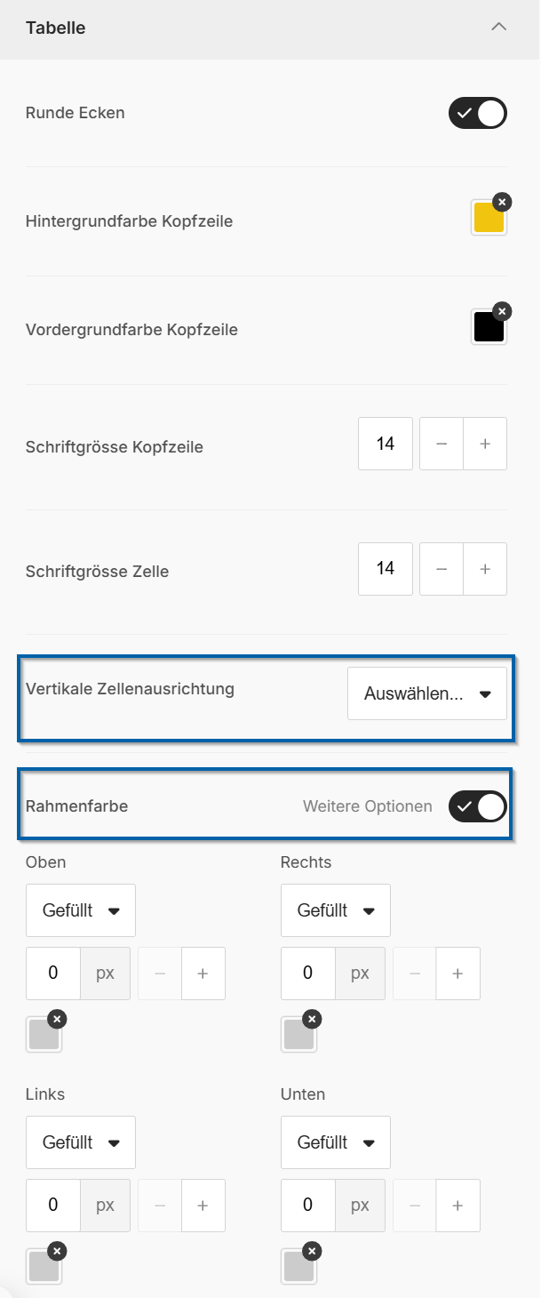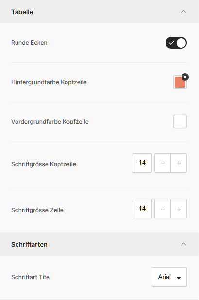 ASA Webmail I Tabelle
