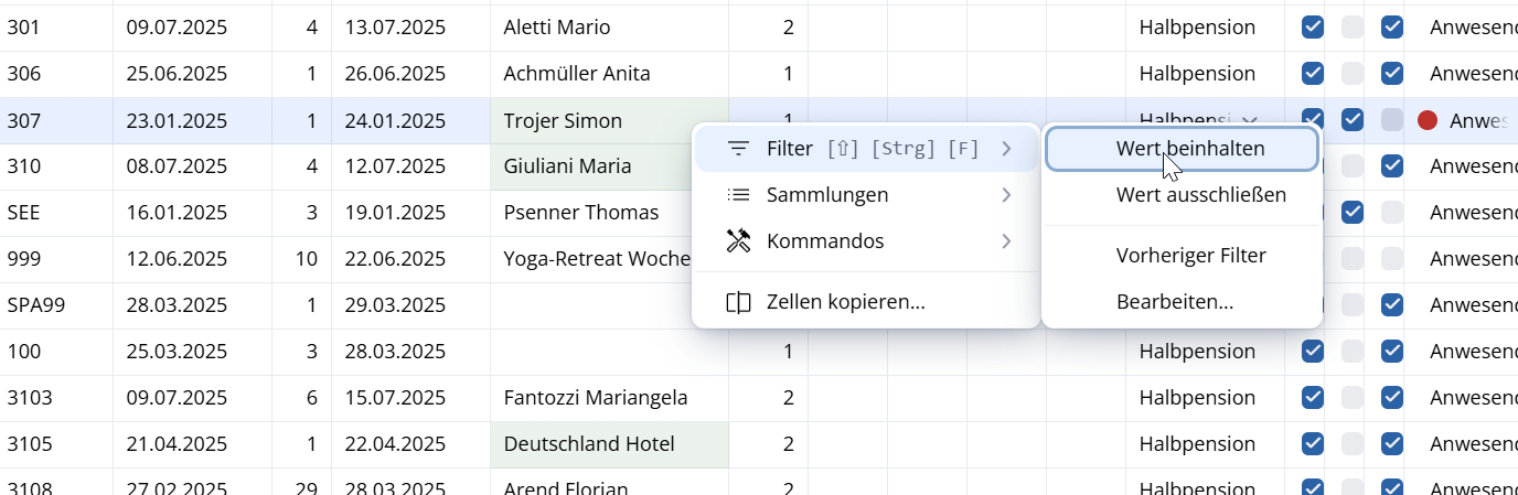 Seit den letzten Versionen ist es möglich diverse Zellen zu markieren (Strg oder Umschalttaste), nun sind auch die Filter "Wert beinhalten" und "Wert ausschließen" für mehrfach selektierten Zellen aktiv.