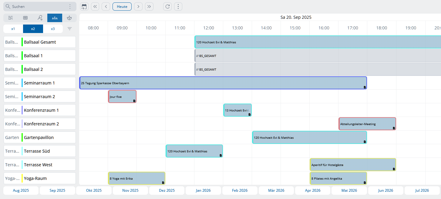Ob Tagung, Seminar oder Feier – die Veranstaltungsverwaltung in ASA HOTEL sorgt dafür, dass Planung und Organisation von Events effizient und übersichtlich bleiben. Verschiedene Räume mit individueller Bestuhlung, Paketen, Business-Pauschalen und Teilnehmerzahlen lassen sich flexibel kombinieren und koordinieren.
