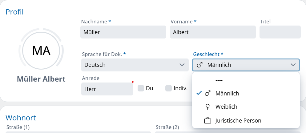 Das Geschlechter-Icon wird jetzt sowohl in den Tabellen als auch im Formular im Web angezeigt.