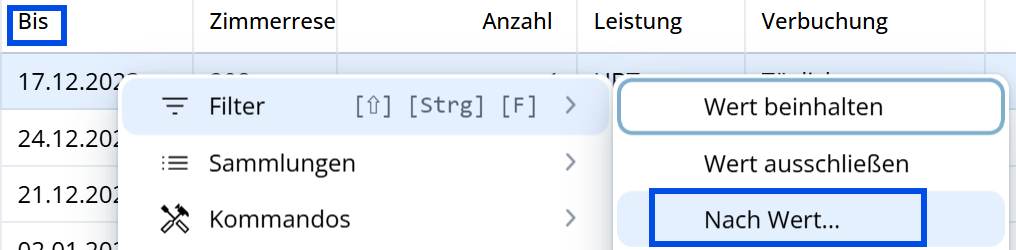Bei den Leistungsbuchungen (Hotel -> Bewegungen -> Leistungsbuchungen) nach Aufhebung des Vorfilters alle Leistungen für 2026 filtern (Bis größer 01.01.2026).