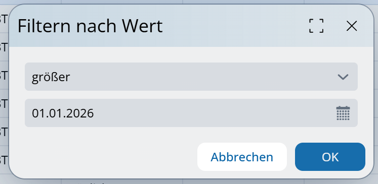 Jahresübergreifende Leistungen können mit dem Listenkommando „Splitten“ aufgesplittet werden, indem beim Datum „01.01.2026“ eingetragen wird.