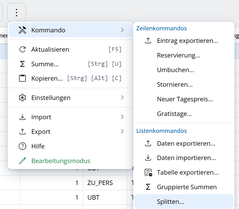 Für Korrekturen von bereits aufgebuchten Leistungen mehrerer Reservierungen stehen die mächtigen Listenkommandos „Splitten“ und „Spalten füllen“ zur Verfügung.
