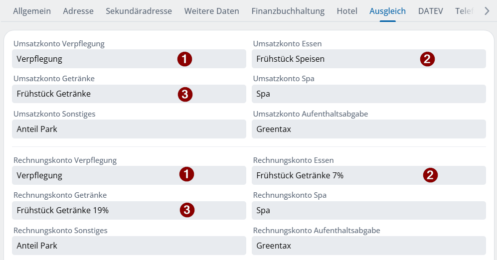 Manuelle Korrekturen sind eventuell nur dann notwendig, wenn der Betrieb bisher mit einem gemeinsamen Rechnungskonto für Essen und Getränke gearbeitet hat (z.B. Frühstück nur mit Ausgleichstyp Verpflegung (1) und es bereits aufgebuchte Leistungsbuchungen für 2026 mit einem gemeinsamen Ausgleichsbetrag gibt. Das Aufsplitten der Verpflegung in Essen und Getränke wird verständlicherweise nur bei zukünftigen Aufbuchungen von Leistungen berücksichtigt.