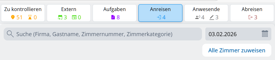 Zusätzlich steht in den Quick-Infos der Anreisen ebenfalls das Kommando „Alle Zimmer zuweisen“ zur Verfügung (öffnet ebenfalls den Assistenten).