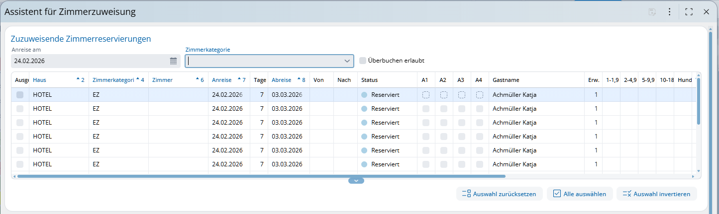 In beiden Fällen öffnet sich der Assistent für Zimmerzuweisung