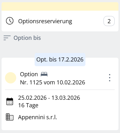 Reservierungen mit Optionsstatus inklusive Anzeige des Optionsdatums.