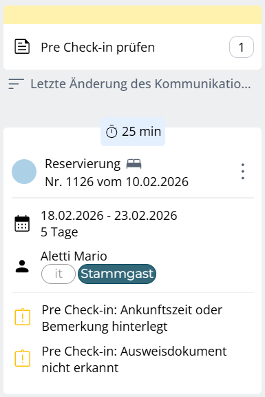 Reservierungen mit abgeschlossenem Pre Check-in, bei denen eine manuelle Prüfung erforderlich ist, z. B.: