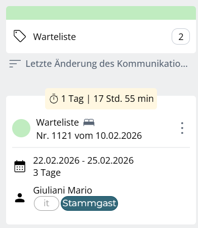 Überblick der Warteliste auf bereits reservierte Zimmer.