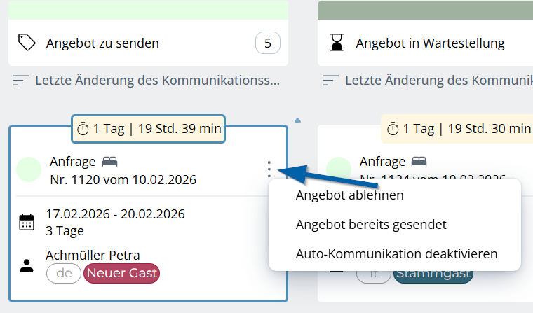 Bereits versendete Angebote, bei denen auf die Rückmeldung des Gastes gewartet wird.