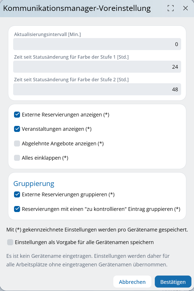 Anzeige oder Ausblendung von externen Reservierungen, Veranstaltungen und abgelehnte Angebote