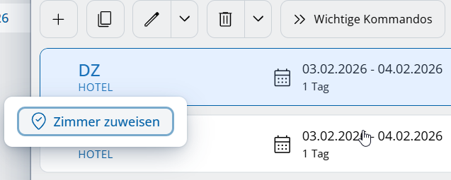 Reservierungen ohne Zimmerzuweisung