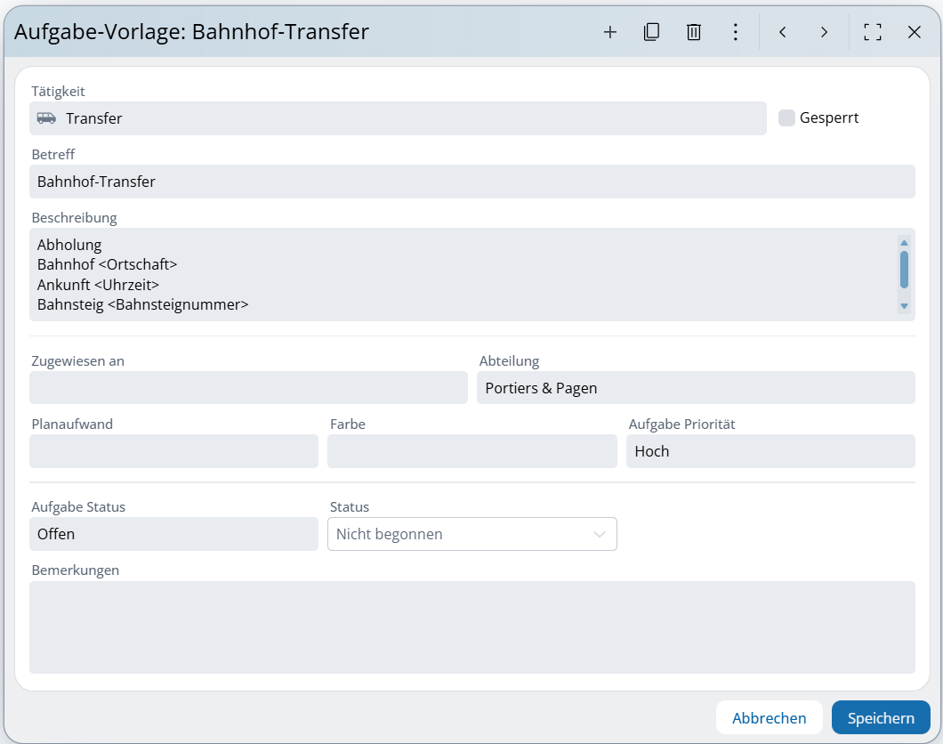 Bei der Neuerstellung einer Aufgabe, kann diese auch aus einer Vorlage erstellt werden.