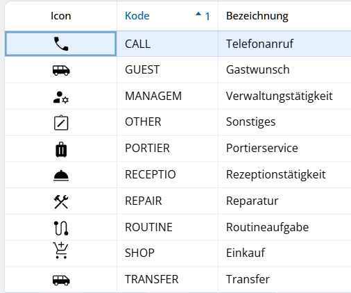 Über die Tätigkeit kann eine Aufgabe kategorisiert werden (z. B. Reparatur, Gästewunsch). Die Pflege erfolgt unter