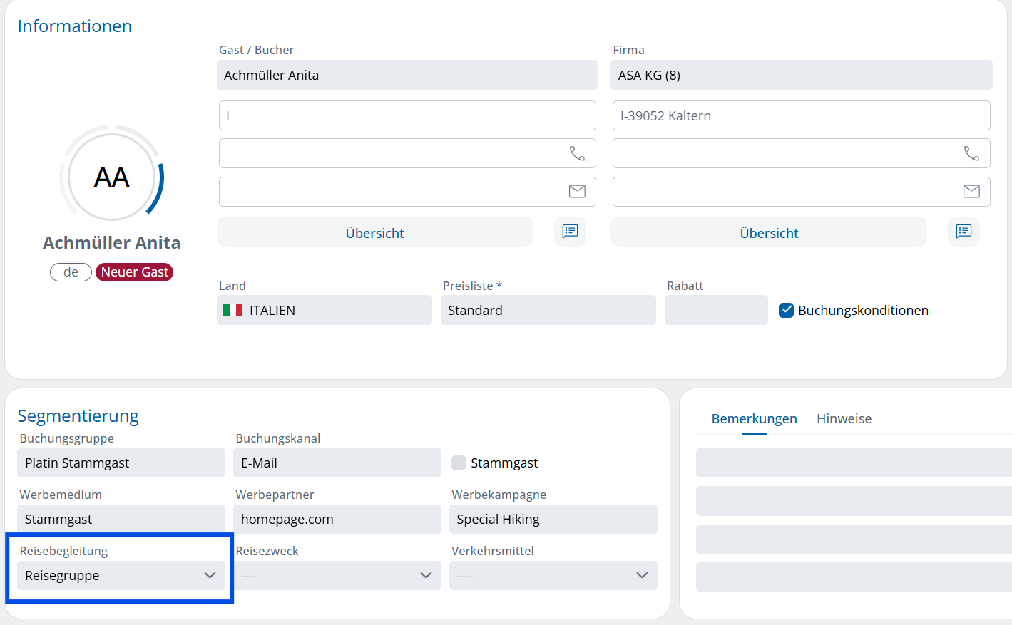 ...und die Zimmergäste sind automatisch hinterlegt: