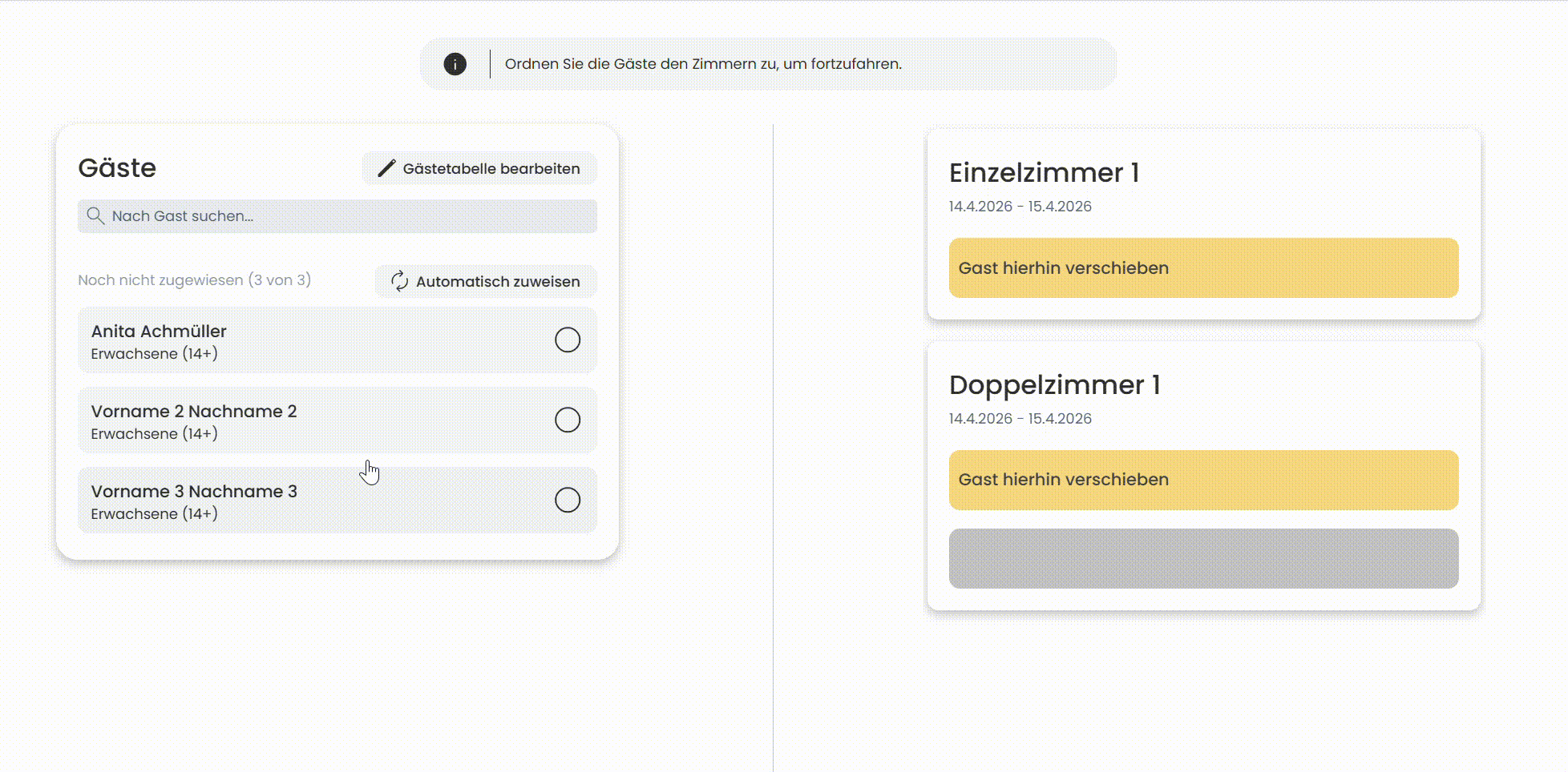 - Automatische Zuweisung der Gäste