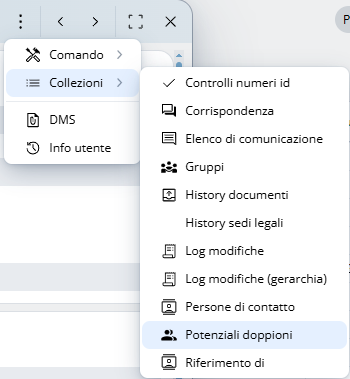Diverse logiche sono integrate nel software in anticipo per evitare i doppioni nel miglior modo possibile. Tuttavia, i doppioni possono anche essere eliminati manualmente utilizzando questo bottone. Il bottone "Potenziali doppioni" può essere utilizzato per elencare ulteriori voci con lo stesso nome da qualsiasi indirizzo. Una voce duplicata in questo elenco può poi essere eliminata molto facilmente utilizzando il bottone "Elimina doppione" o il comando di linea. Tutti i riferimenti esistenti vengono automaticamente sostituiti o adottati (quindi fare attenzione prima di procedere!).