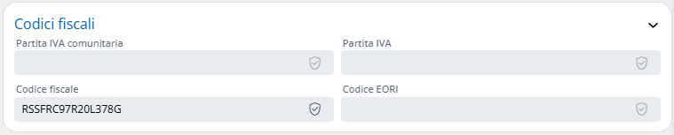 In quest'area, vengono inseriti il codice fiscale, il numero di partita IVA e il numero di partita IVA comunitaria. Oltre a un controllo di plausibilità dei dati integrato al programma, è possibile accedere direttamente alle banche dati online, a seconda dell'installazione, per verificare la correttezza dei dati.