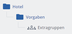 Con l'aiuto dei gruppi di extra, i singoli extra vengono combinati in gruppi o sottogruppi, che possono anche differire nel colore. Un gruppo extra può fare riferimento a diversi punti vendita, ma solo a un luogo ordine.