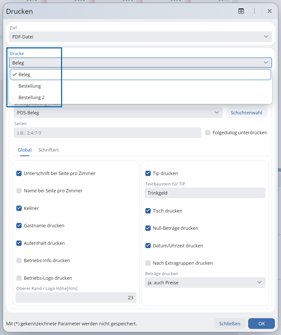 I rapporti delle stampe degli ordini (ORDER) sono memorizzati nei luoghi ordini. Se viene stampato un rapporto diverso o non viene stampato alcun ordine per determinati punti vendita, questo può essere impostato separatamente per ciascun punto vendita.