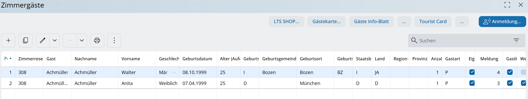 Gli ospiti della camera sono "dati di transazione" che appartengono a una prenotazione. Tra l'altro, sono necessari per la registrazione degli ospiti presso le autorità locali o, nel nostro caso, per l'assegnazione corretta dei trattamenti spa.
