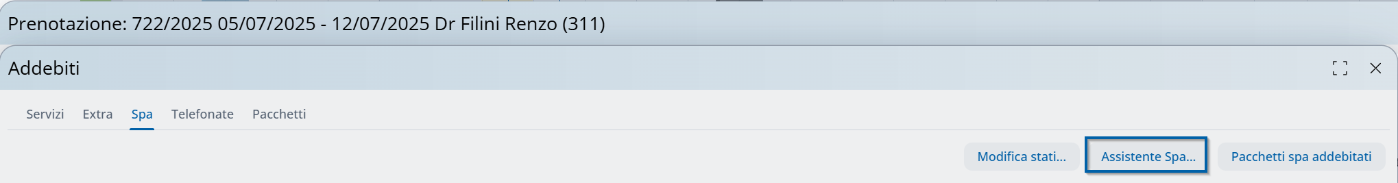 L'Assistente Spa viene avviato dal Pianificatore Spa o dall'area "Spa" di una prenotazione.