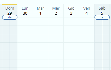 - Visualizzazione di "Oggi" in aggiunta all'evidenziazione cromatica della colonna quando viene cliccato il simbolo corrispondente o viene premuto il tasto F2.