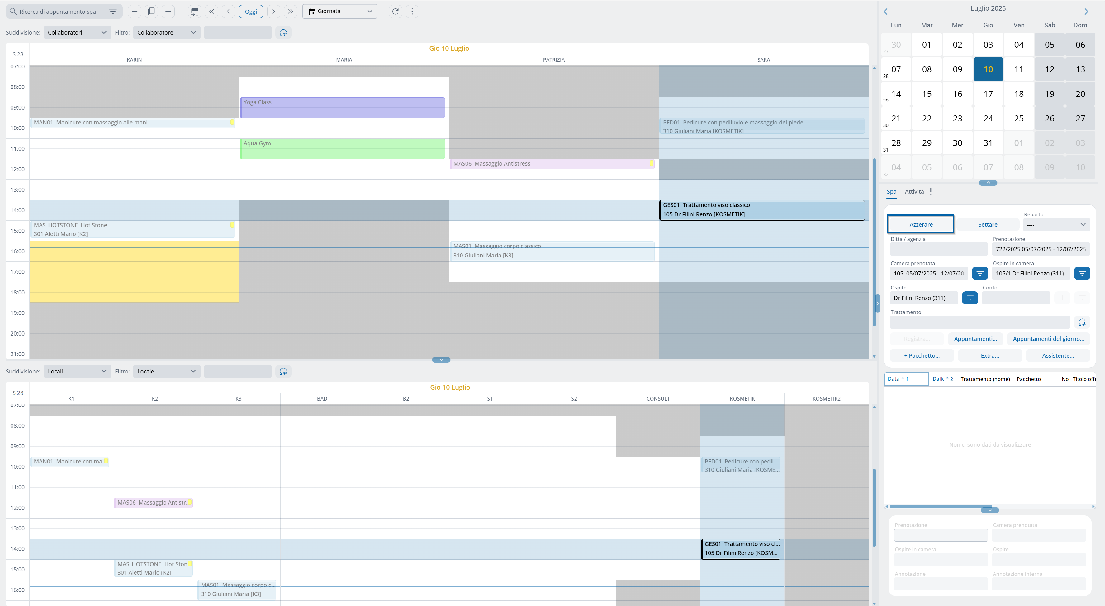 Non appena viene selezionato un trattamento, il software controlla in background quali sono i collaboratori e i locali adatti al trattamento desiderato. Ora vengono visualizzati solo quelli che rispettano i requisiti del filtro, tutti gli altri vengono nascosti. Ora puoi continuare a lavorare nel Pianificatore Spa "ordinato".