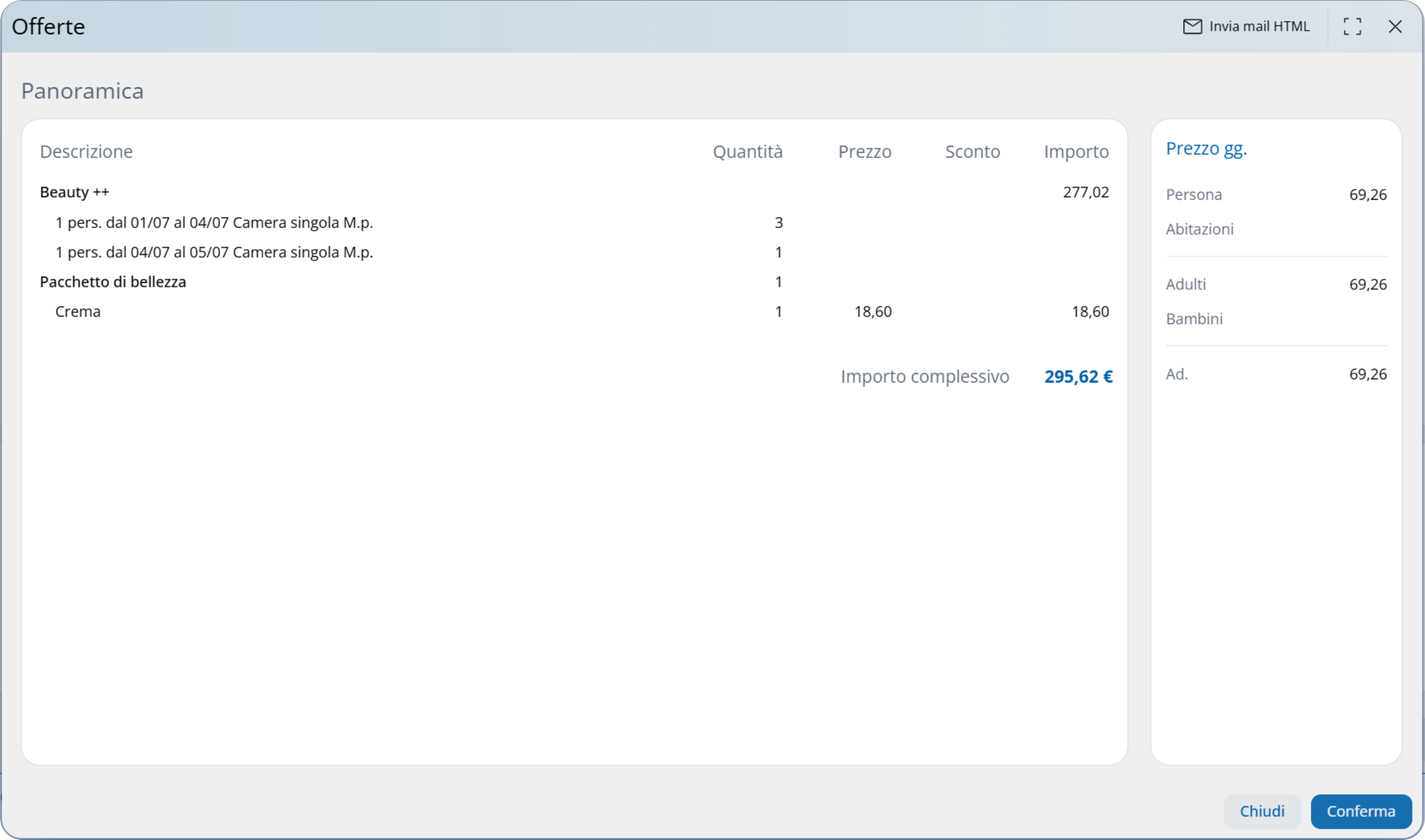 Una panoramica dei servizi, degli extra, della Spa e delle telefonate viene visualizzata nelle prenotazioni: