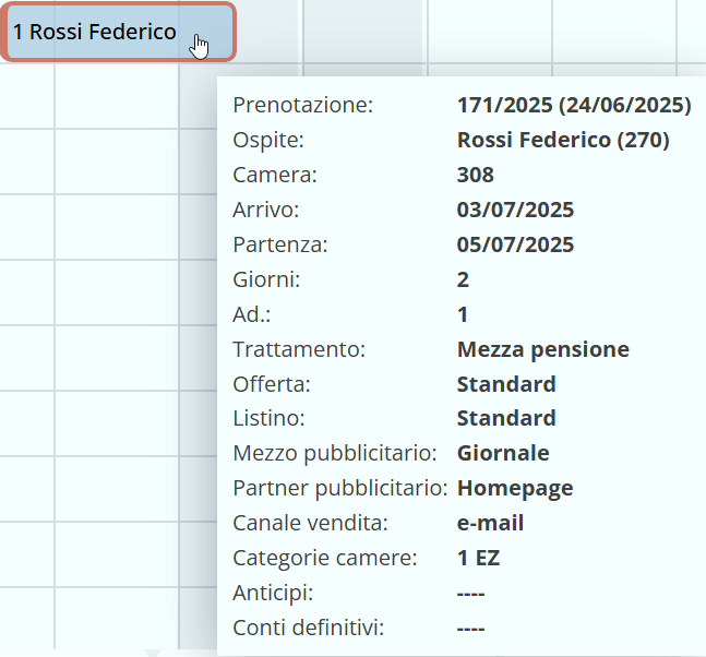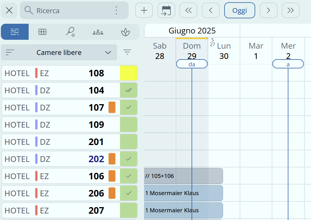 Quadro prenotazioni | Operazioni