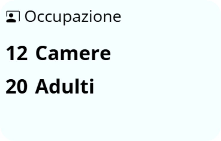 L'indicatore Occupazione mostra sia il numero di camere già occupate oggi (camere con arrivo/partenza oggi + camere già occupate) sia il numero di adulti che occupano tali camere oggi.