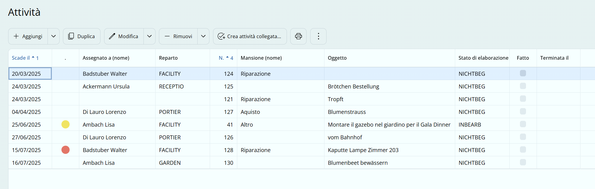 L'indicatore Compiti mostra il numero di compiti che attualmente non sono ancora nello stato completato. I compiti da completare possono essere visualizzati direttamente cliccando sul bottone:
