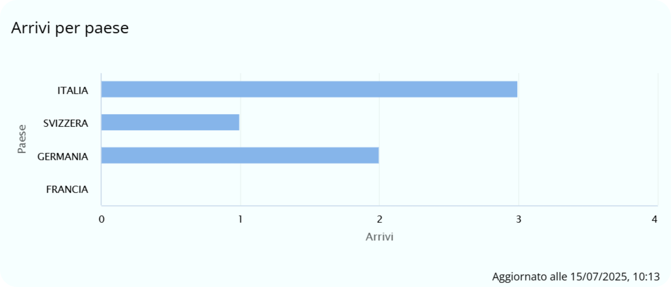 I diagrammi Arrivi/partenze per Paese mostrano il numero di persone in arrivo/partenza nel giorno corrente.