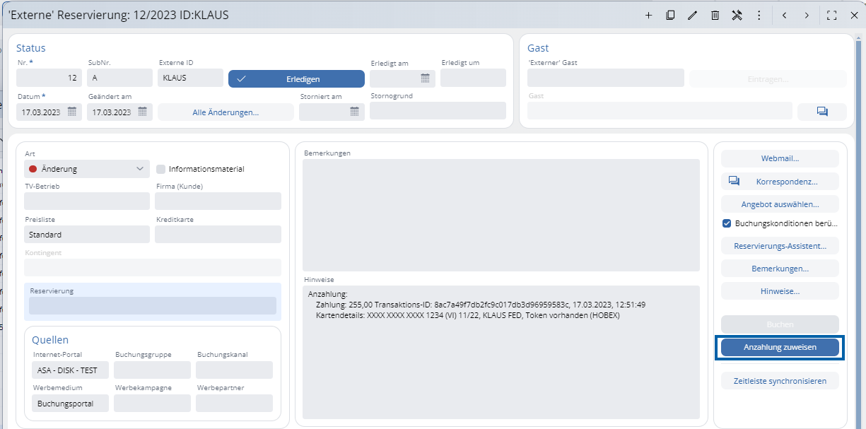Pulsante di pagamento hogast: tramite il pulsante di pagamento hogast, l'ospite può dare il consenso per i pagamenti successivi, cioè per continuare a utilizzare la carta di credito nell'ambito del soggiorno prenotato. Se l'ospite dà il suo consenso e un sistema di pagamento (Hobex Online (3D Secure)) è attivo, tutti i dettagli del pagamento e della transazione vengono caricati insieme all'acconto e gli ulteriori pagamenti possono essere effettuati direttamente in ASA HOTEL anche senza una carta di credito fisica. Se l'ospite non dà il suo consenso, l'acconto verrà caricato senza i dettagli della transazione e gli ulteriori pagamenti potranno essere effettuati solo con la carta di credito fisica in loco.