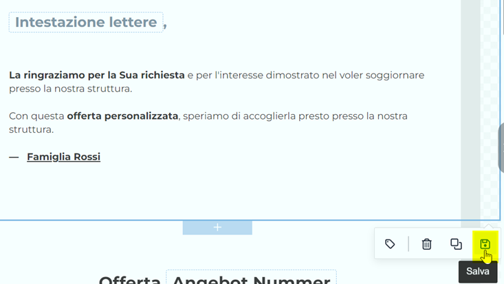 Se si desidera utilizzare un blocco in più template, è consigliabile salvarlo dopo la prima creazione. Questo appare nella scheda "Blocchi" e può essere trascinato facilmente in qualsiasi modello.