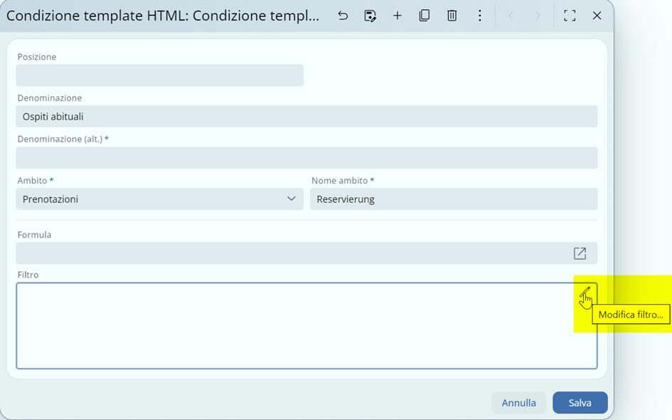 Dopo aver selezionato l'area (normalmente "Prenotazione"), fare clic sulla matita nel campo "Filtro". È quindi possibile impostare i singoli filtri.