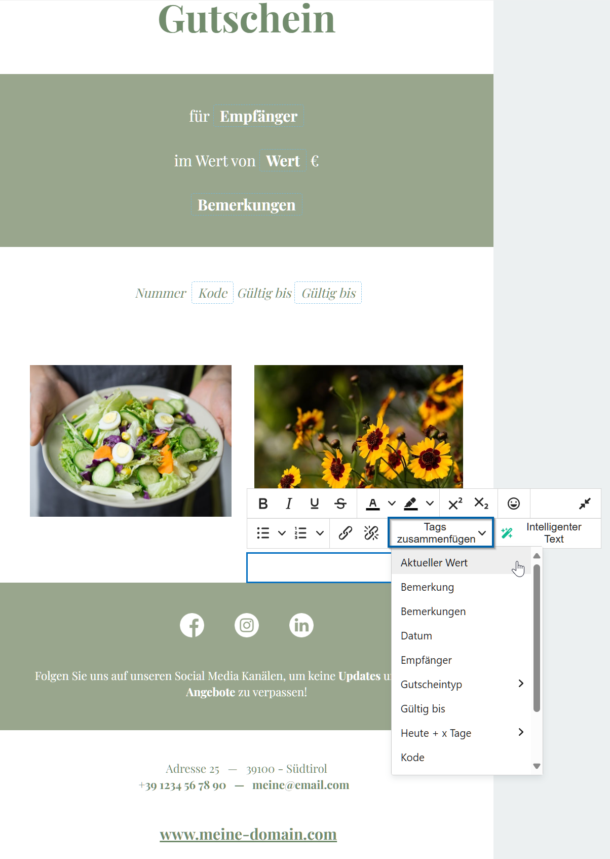 Durante la creazione del/dei modelli si può ora lavorare con diversi «Tag», in modo che varie informazioni vengano prelevate direttamente dalla gestione dei buoni regalo.