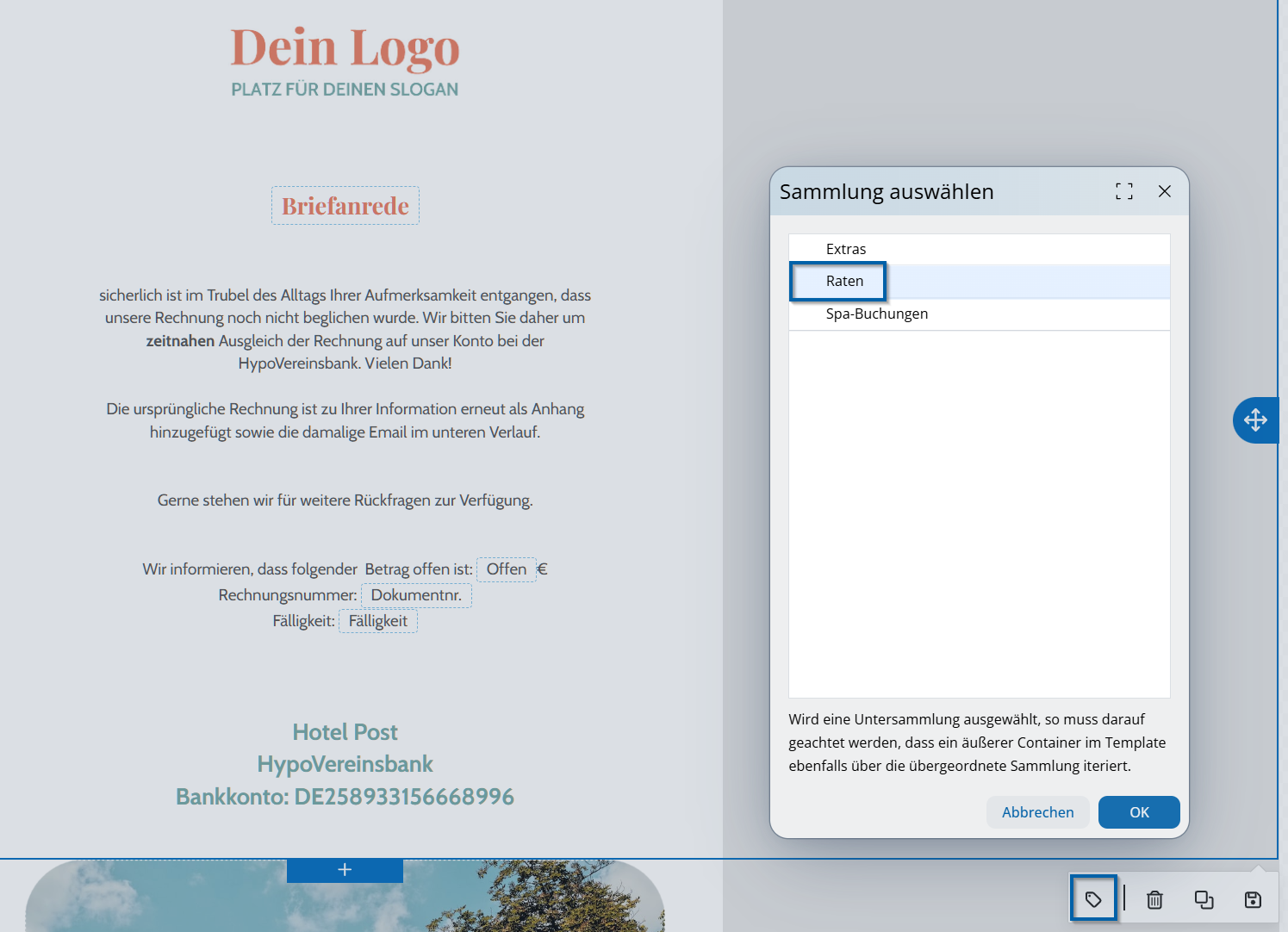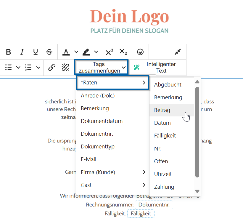 Attraverso ASA Pay è anche possibile integrare un link di pagamento direttamente nel modello. In questo modo il processo di pagamento può essere completato con pochi clic. Non è mai stato così semplice richiedere i pagamenti aperti. Qui trovate l’articolo corrispondente: