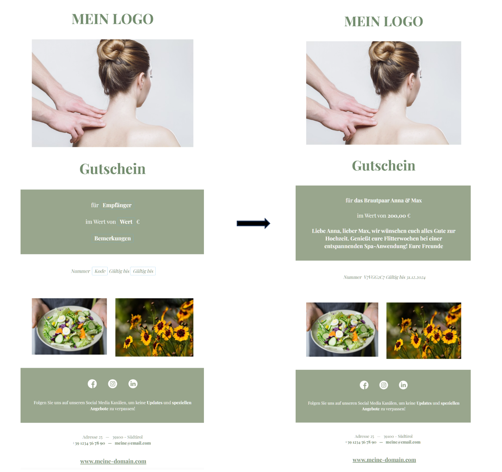 All’interno del buono regalo compilare i campi che sono collegati come tag nel modello.