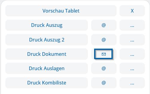 In ogni conto di fatturazione accanto ai vari modelli di stampa è disponibile una «@», che consente l’invio diretto della fattura via e-mail tramite Webmail. Una volta che la fattura è stata inviata via e-mail, la «@» viene sostituita da una busta.