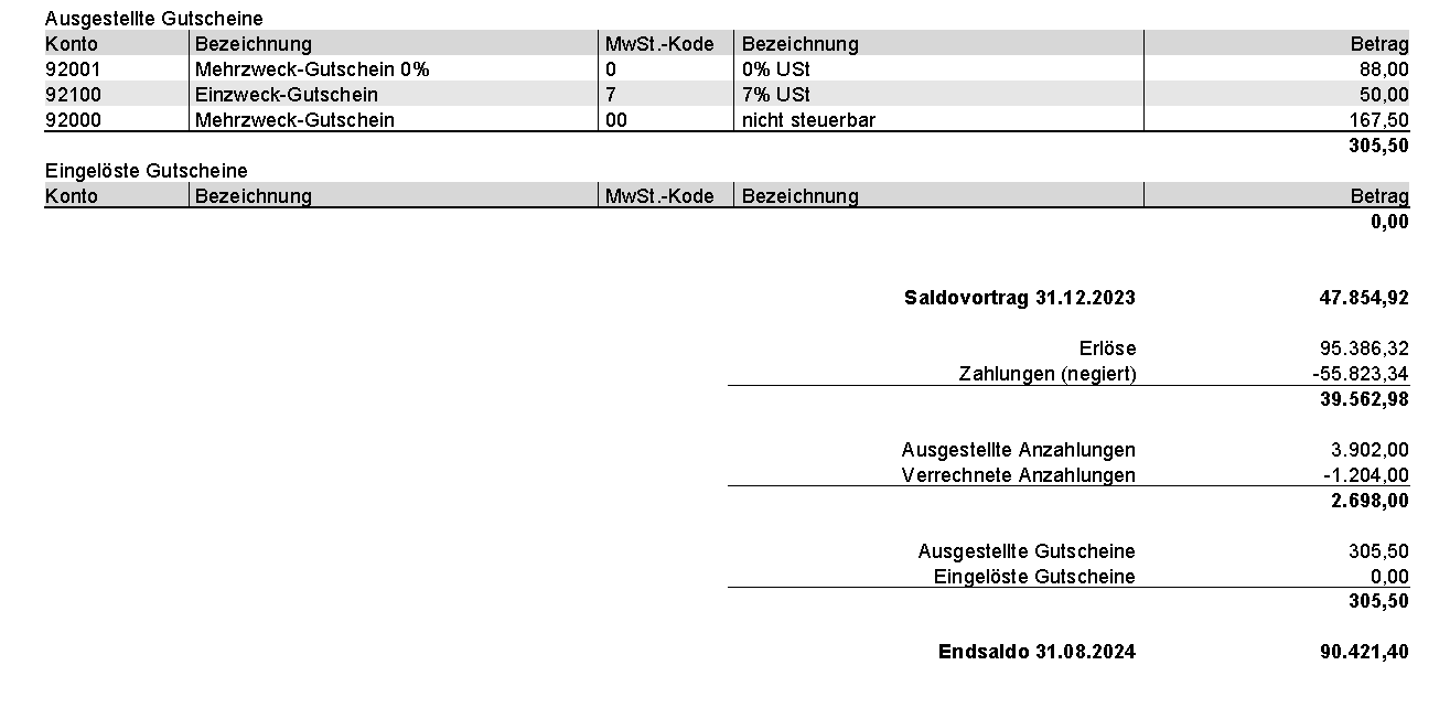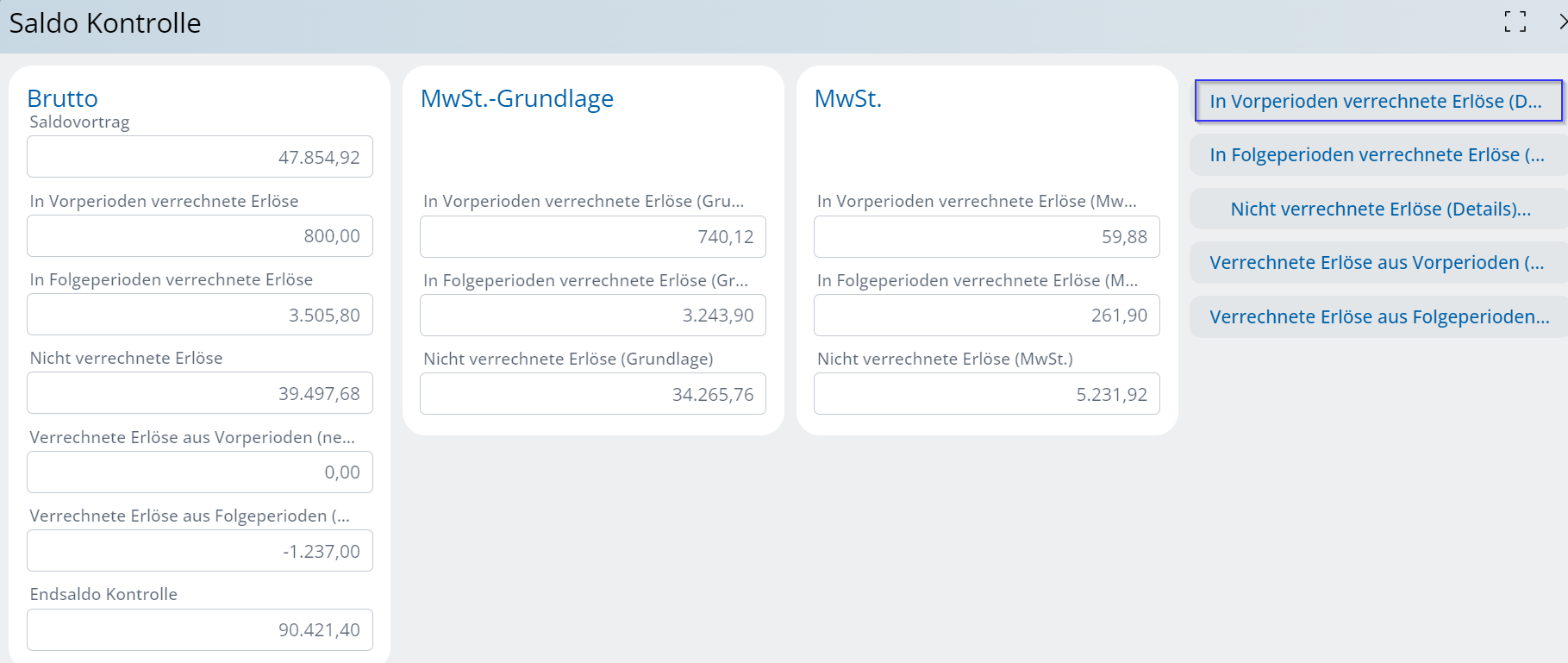 Il saldo finale (saldo residuo) corrisponde in linea di principio ai ricavi non compensati alla data di riferimento. L'importo corretto per un periodo risulta dai ricavi non compensati meno la compensazione dei ricavi di altri periodi.