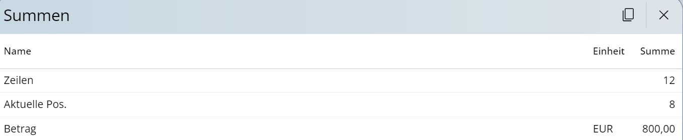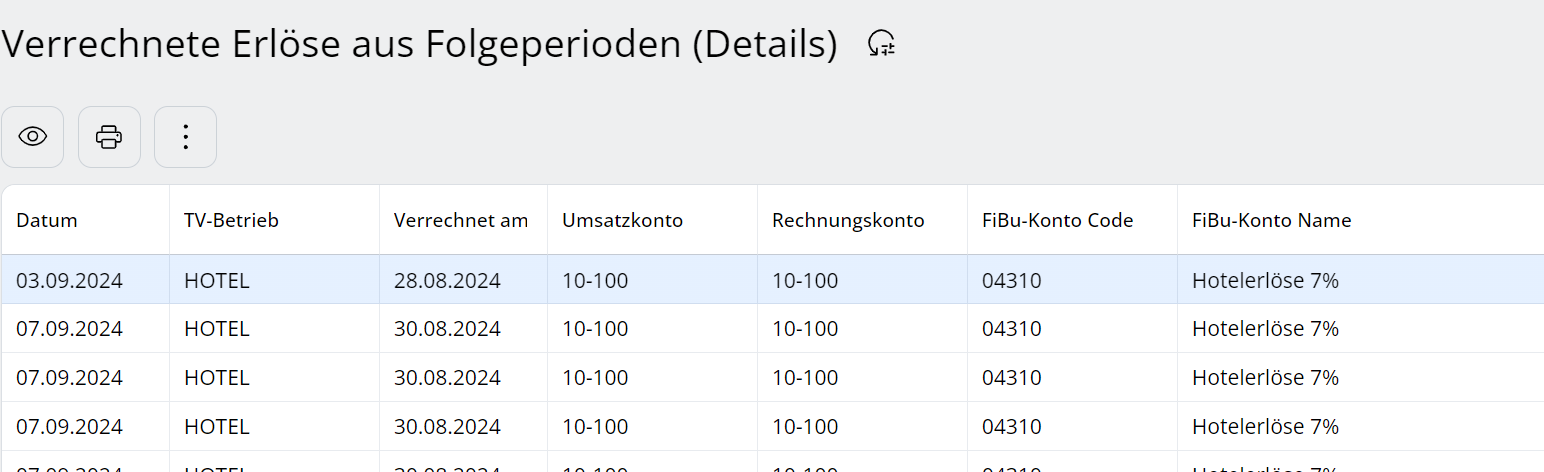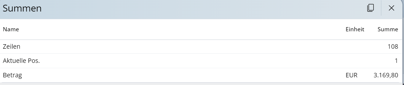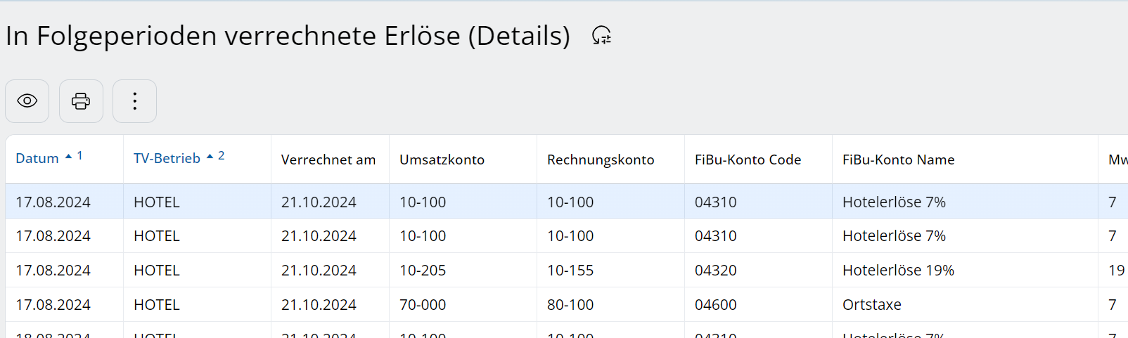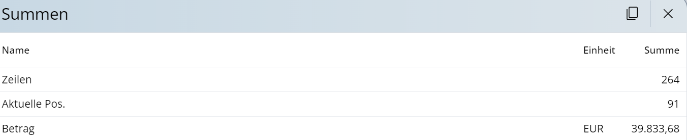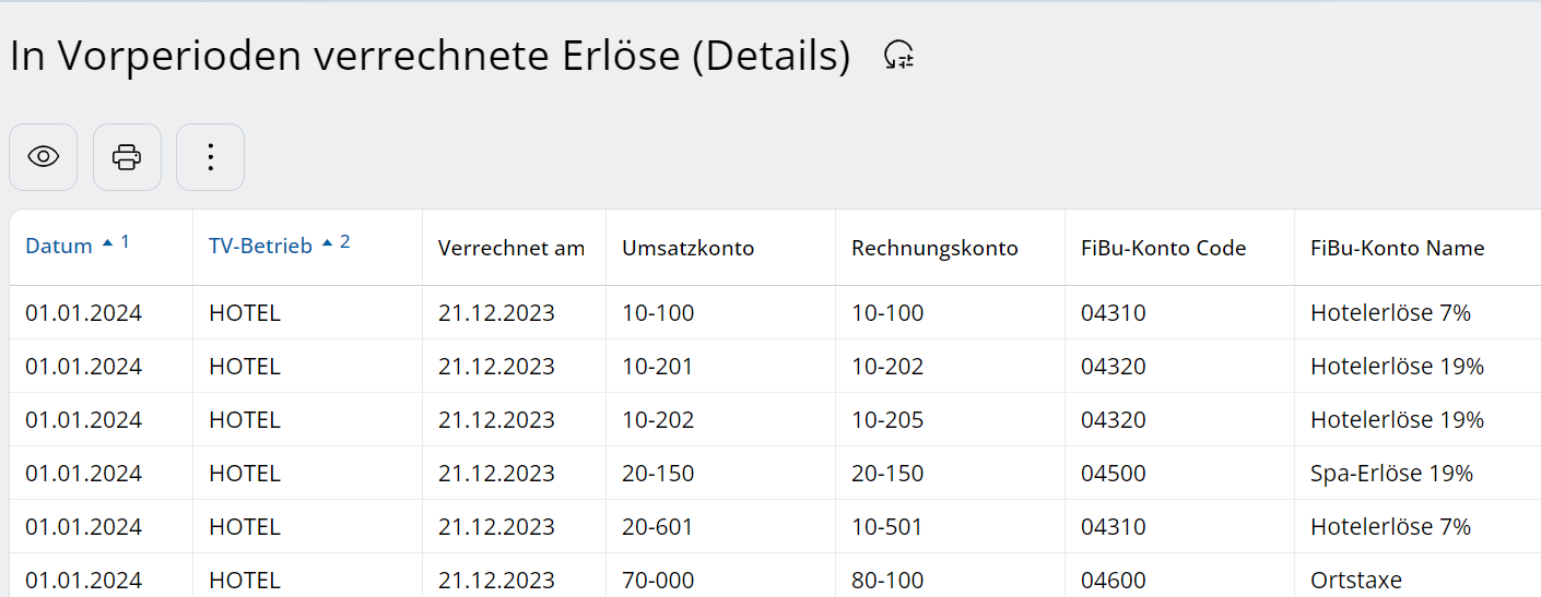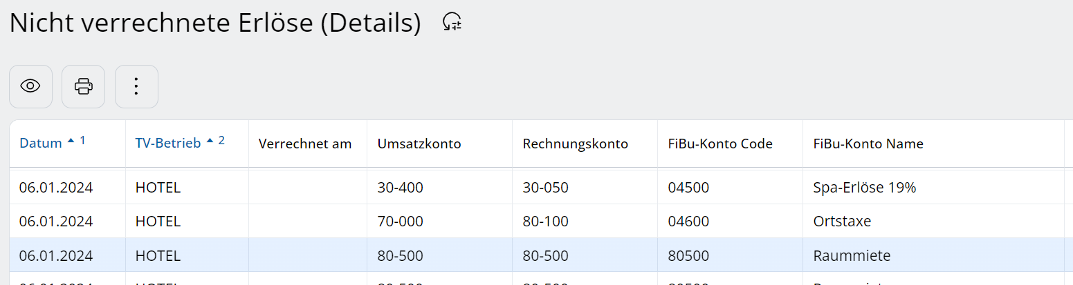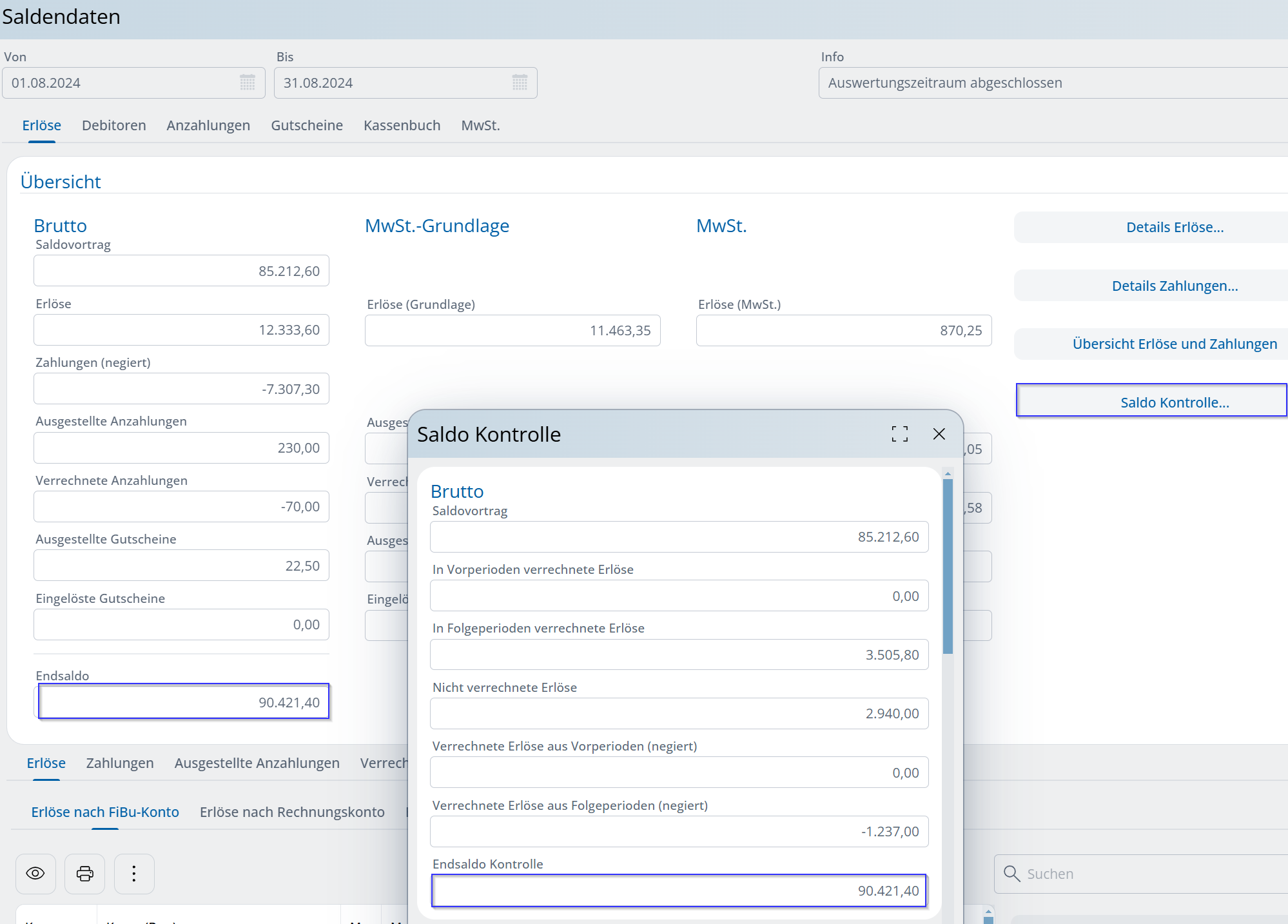 Per tutte le panoramiche, i dati rilevanti vengono visualizzati nelle sotto-tabelle corrispondenti; per i controlli, il bottone Dettagli fornisce tutte le informazioni dettagliate fino alla fonte originale (voce del conto, prenotazione, addebito, ecc.).