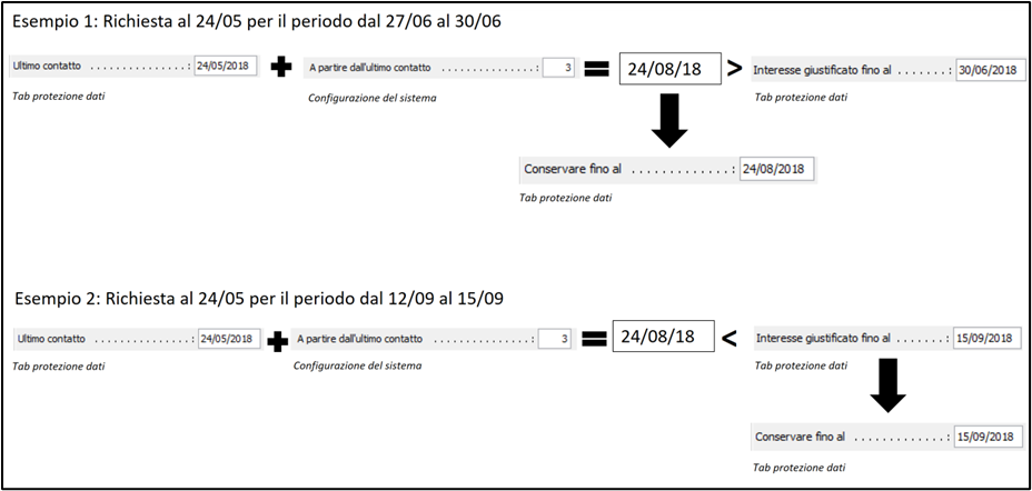 Nota preliminare: Se nel campo "Conservare fino al" non viene inserita alcuna data (illimitato), l'ospite non verrà cancellato né bloccato. Negli altri casi, questa data è il risultato di diversi calcoli in background relativi alle impostazioni sulla protezione dati specificate nelle impostazioni di sistema.
