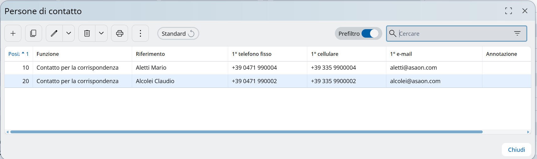 Persone di contatto per la corrispondenza e la fatturazione