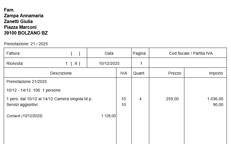 Nella scheda “Impostazioni prenotazione” viene definito a quale gruppo IVA appartiene l’azienda. Questa impostazione è particolarmente importante per un corretto trattamento fiscale nelle fatture – ad esempio nel caso di un’azienda estera o un’attività esente da imposta. Il gruppo IVA qui indicato viene applicato automaticamente ad ogni prenotazione, garantendo una fatturazione senza errori.