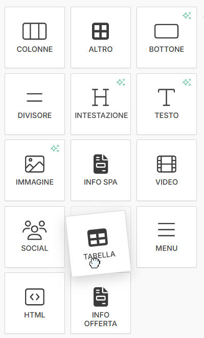 - Nell'editor è disponibile un nuovo blocco per creare facilmente tabelle flessibili. Nel blocco è possibile selezionare una collezione (il database) e definire una configurazione di colonne. Viene proposta una configurazione per le collezioni che esistono già in forma tabellare nel blocco dell'offerta. Ulteriori informazioni sono disponibili qui: ASA Webmail I Funzione “Tabella” nell’editor di template