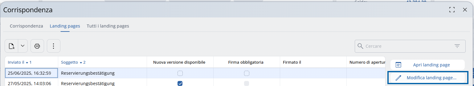 - Una landing page già inviata può ora essere modificata e reinviata. A questo scopo è stato aggiunto un nuovo comando alle comunicazioni landing page. Una landing page può essere modificata solo se quella originale non è stata ancora firmata o se non è stata ancora inviata una nuova landing page.