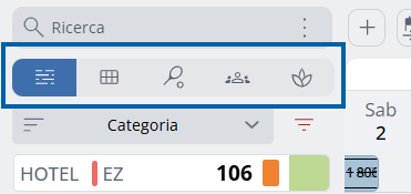 - Ora è possibile passare da un quadro all'altro (quadro prenotazioni, quadro categorie, quadro risorse, quadro spa, quadro eventi). Vengono applicati il giorno selezionato e il periodo selezionato, se disponibile.